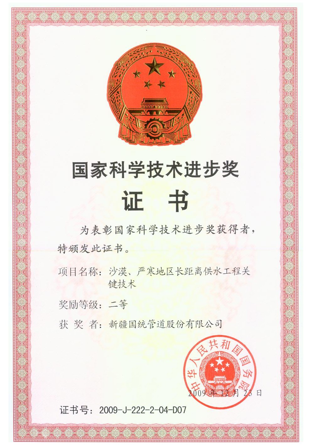 • 國家科學(xué)技術(shù)進(jìn)步獎(jiǎng)證書