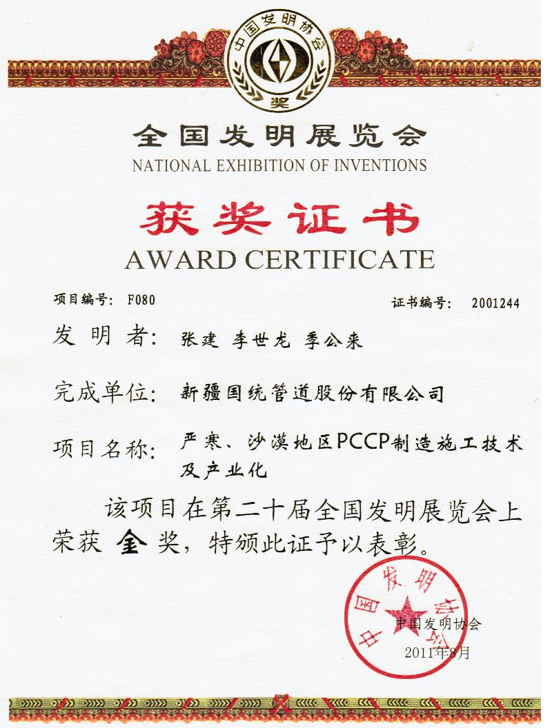• 中國發(fā)明展覽金獎(jiǎng)